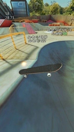 在操作上游戏也尽量采用了真实的操作方法,玩家需要把自己的手指当做踩在滑板上的两条腿,想要滑板动起来拼命的晃动屏幕是没用的,你需要用手指滑动滑板边的屏幕来模拟蹬地的效果,这样才能前进,同理想要转弯也需要在滑板上滑动来进行操控。