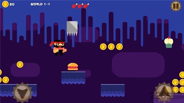 忍者快跑地下城冒险是一款非常经典的趣味像素卡通风格的横版动作冒险游戏,以闯关的形式进行,忍者快跑地下城冒险中玩家将化身为一名忍者,开始刺激的冒险,收集途中的食物和金币,躲避各种障碍和危险。